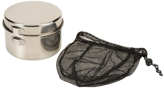 Cook up and enjoy just about any meal on the trail with a compact Coleman® Stainless Steel Mess Kit. The entire 6-piece set nestles inside the stock pot. Take the stock pot apart and the bottom turns into a sauce pan and the lid turns into a separate frying pan with a locking, interchangeable handle. When the meal is cooked, enjoy it from the included BPA-free bowl and mug. When you're done, wash the dishes in the mesh dip bag and pack it all up for the next adventure.